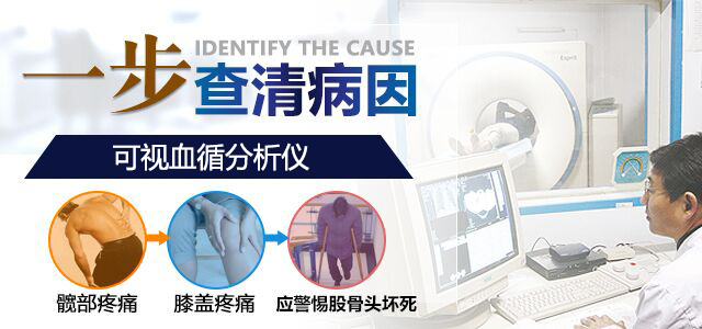 血堵融通:运用“超导可视血循分析仪”查清血管堵塞位置以及坏死程度,并采用“可视血堵融通术结合血液净化”综合治疗进对症融通恢复股骨头供血供氧,阻断坏死机制。